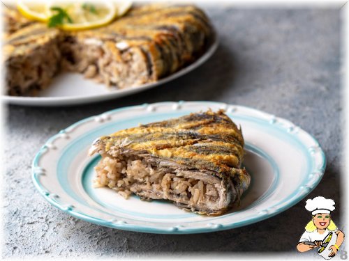 Pilavın üzerine de kalan hamsiler derisi dışa gelecek şekilde dizilir. Fırında 180 derecede 35 dakika pişirilir.
